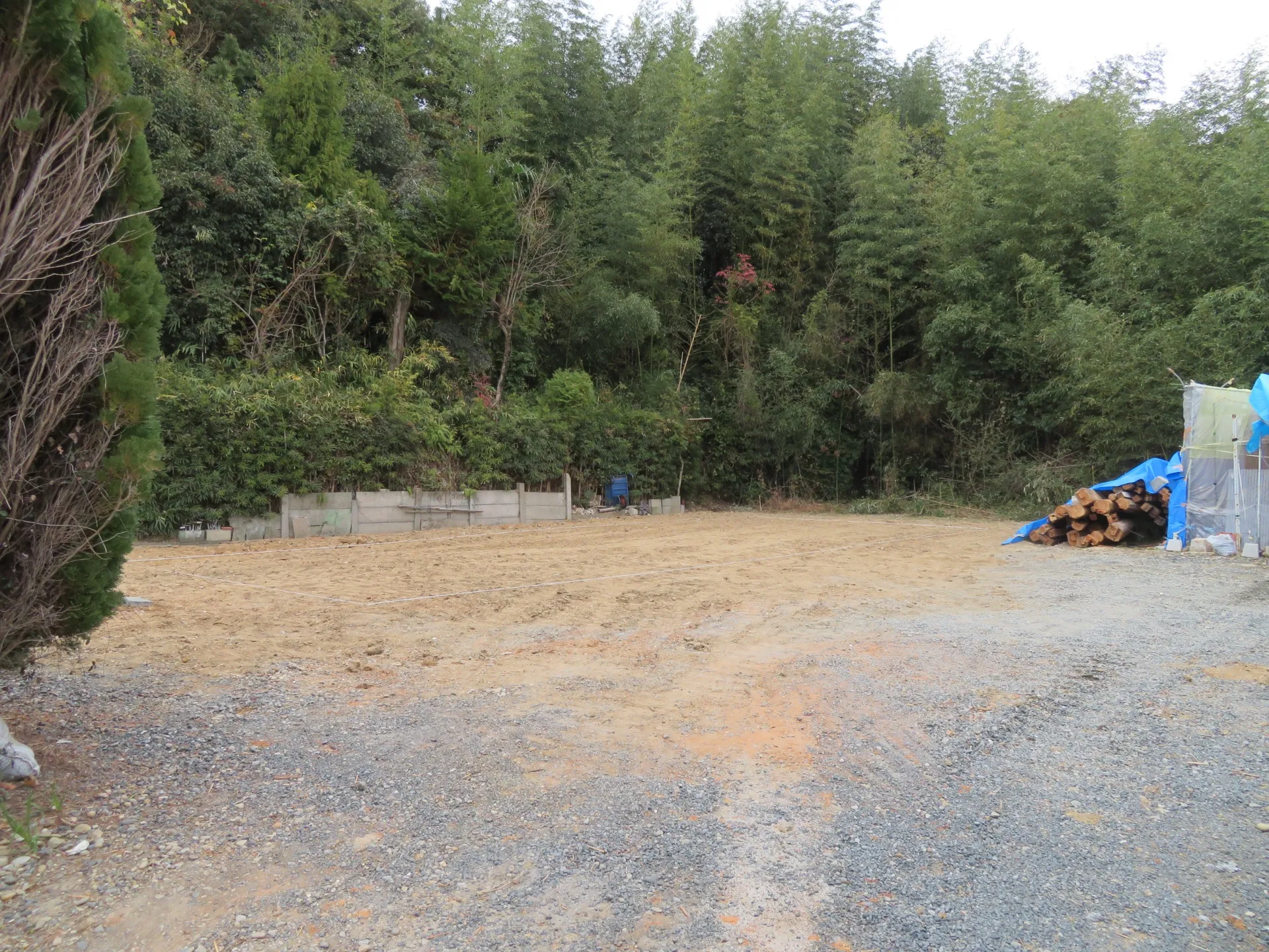 湖西市にて進行中の現場で解体工事も終わり、土地に地縄が張られました。