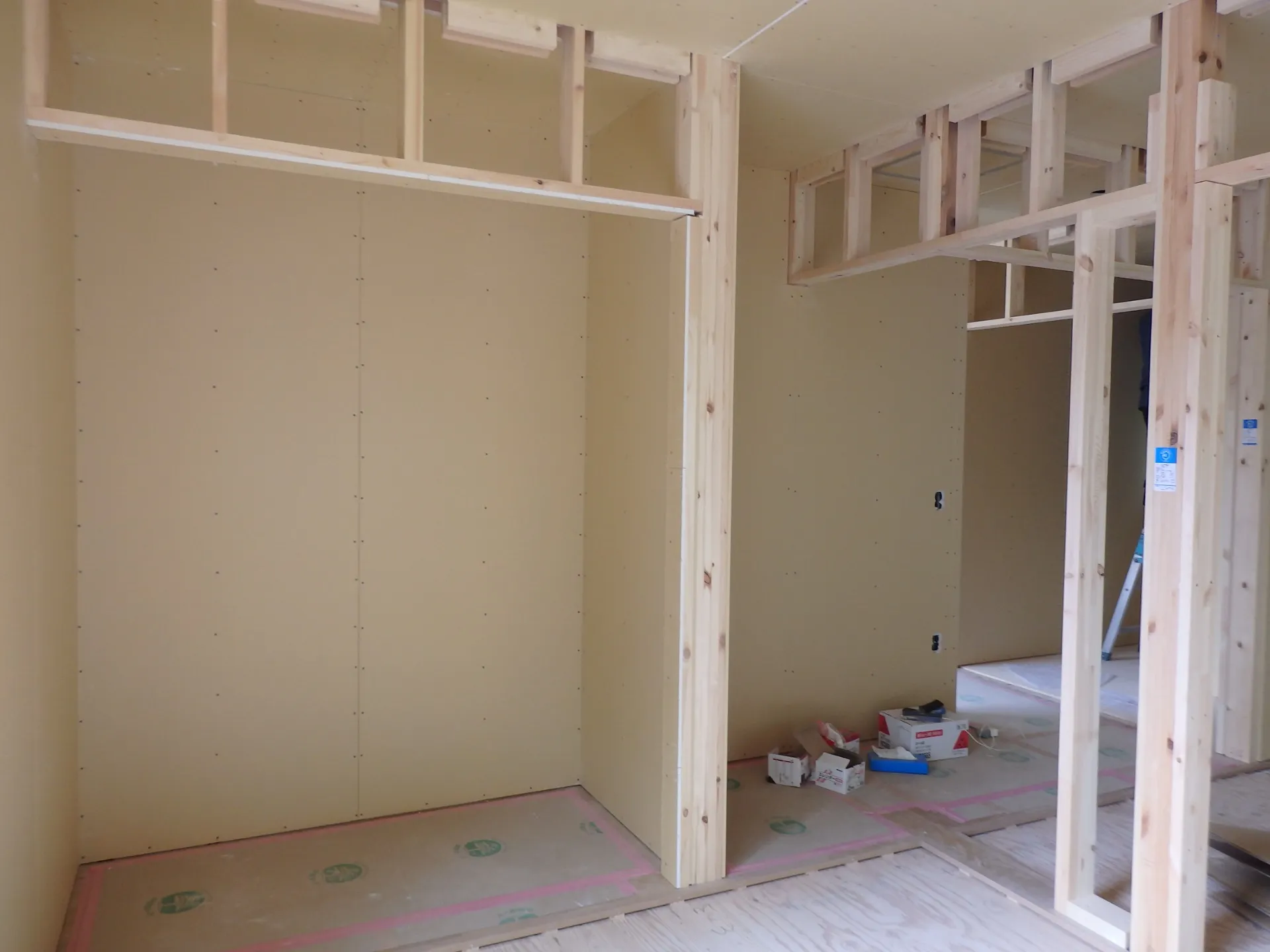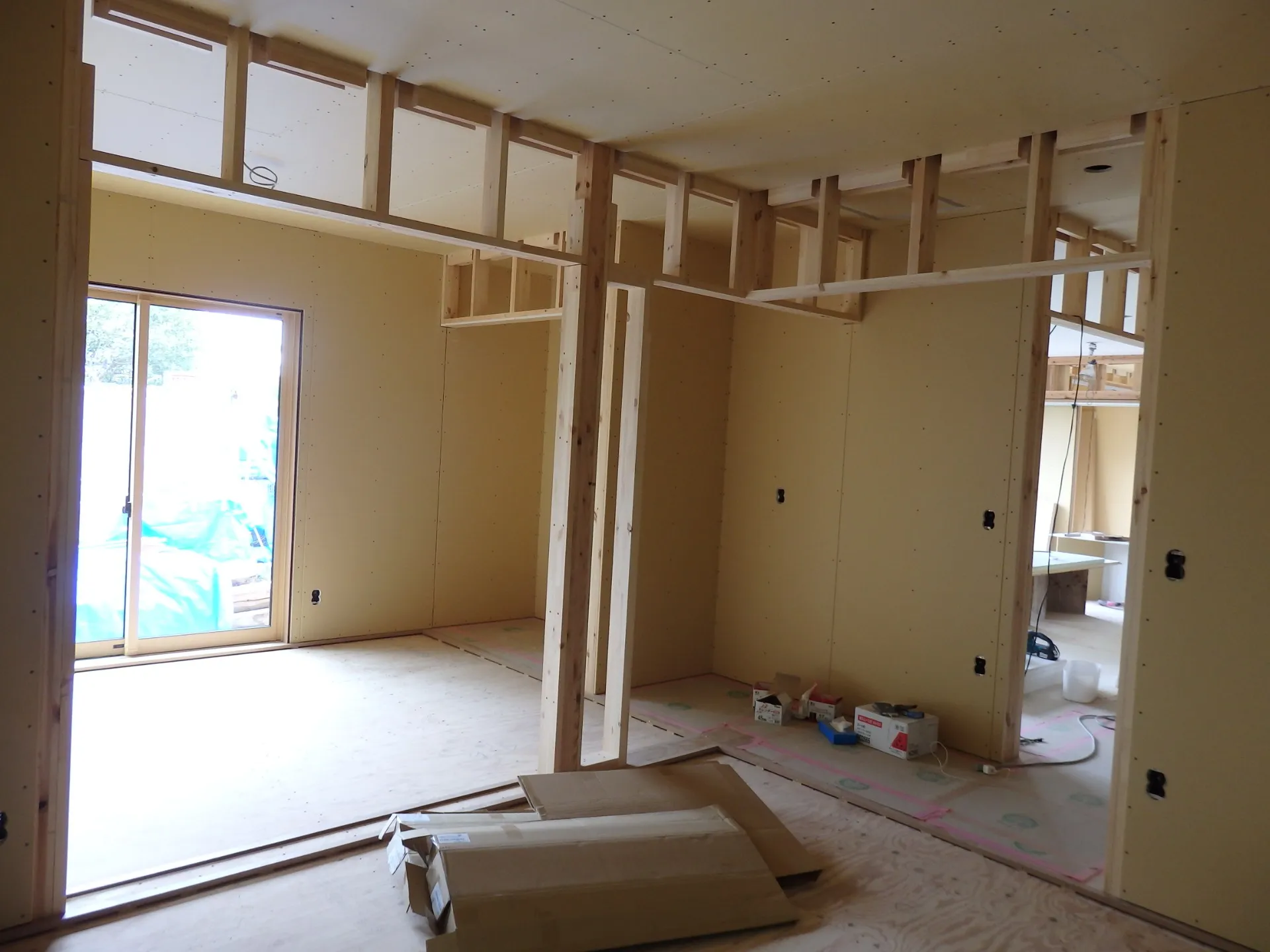 断熱材が入った壁を作っているんですが、この段階まで進むとお家の内部がより間取りらしくなります。