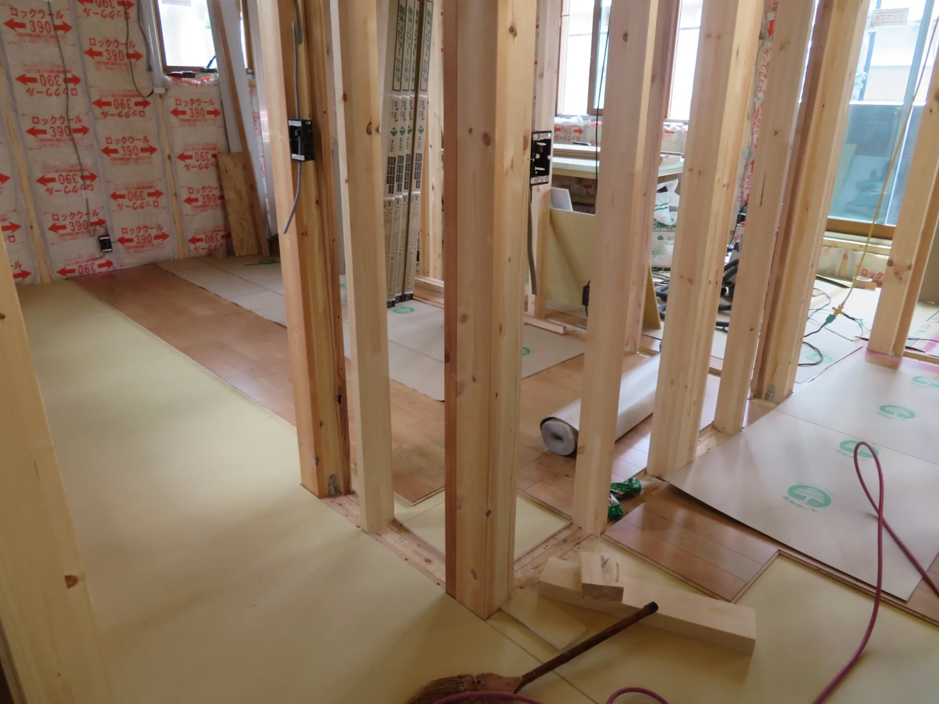 お風呂が入ると工程が進んできたなーと思いますが、もう床張りの段階まで来ていました。。